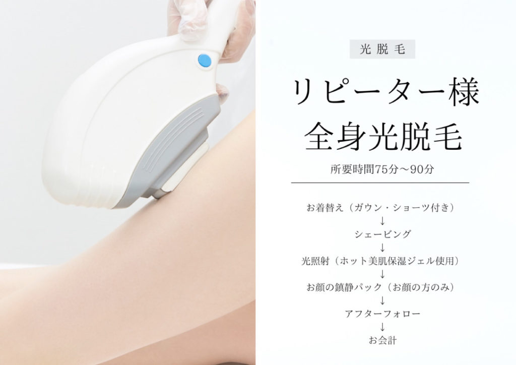 ●セルフ脱毛スタート(リピーター様はここからスタート)→コースの時間になりましたら脱毛ケア終了